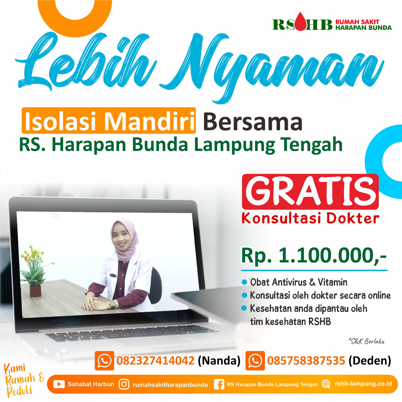 Jangan khawatir dan tetap tenang, kamu bisa isolasi mandiri di rumah bersama RS Harapan Bunda Lampung Tengah.